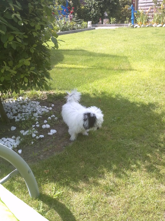 Gestern erhielten wir ein neues Bild vom kleinen "Boß" Hugo. Er lebt in der Nähe von Hamburg und hat sich zu einem ganz süßen kleinen Kerl entwickelt. An den Wochenenden hat er auch schon ein Hobby. Er geht dann immer mit seinem Rudel in seinen Schrebergarten und buddelt dort für sein Leben gerne. Genau wie Papa Bruno...........
